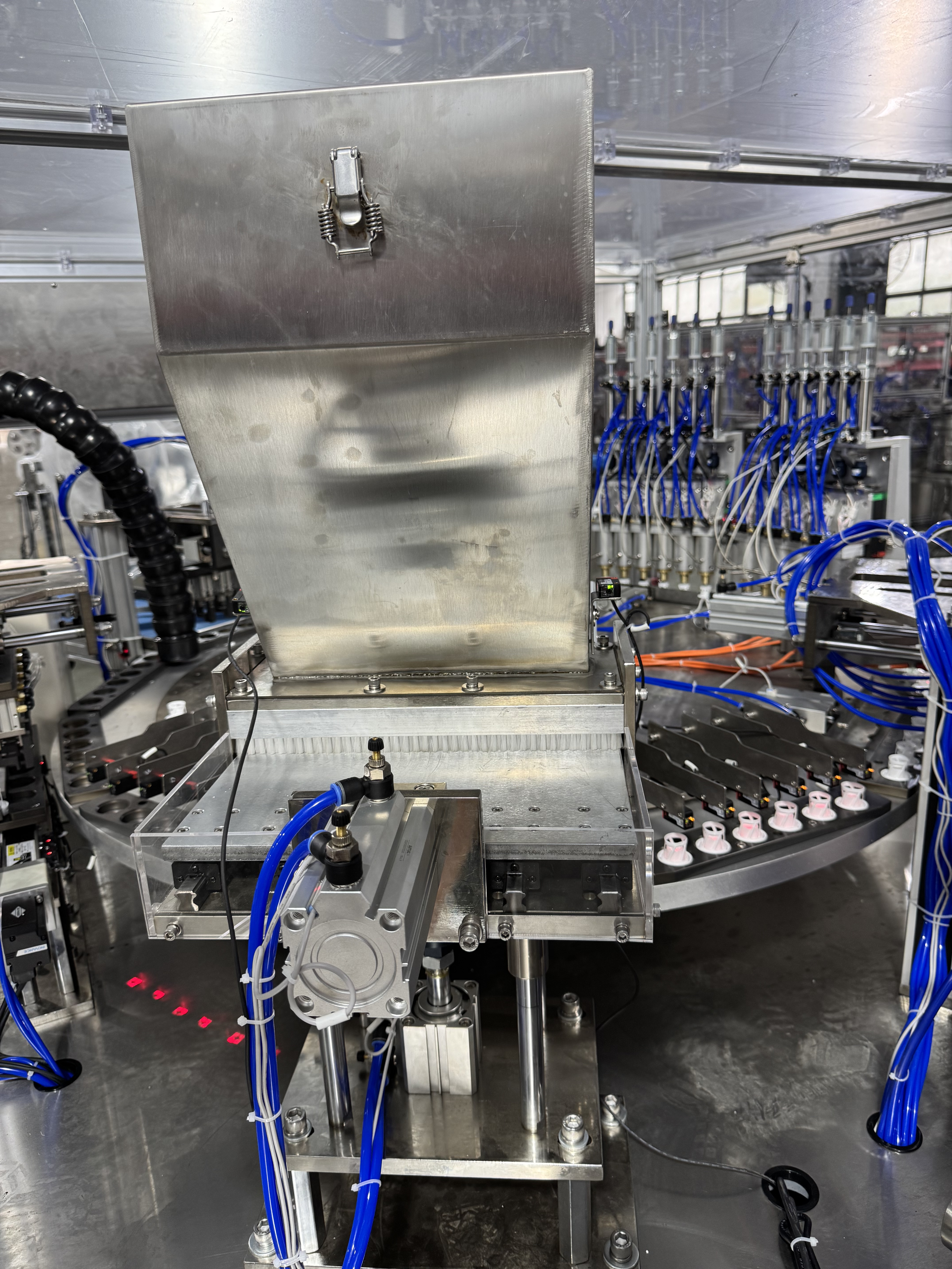 Four color sensor detect if there are desiccant in caps or not,and auto reject the caps without desiccant dryer inserted.