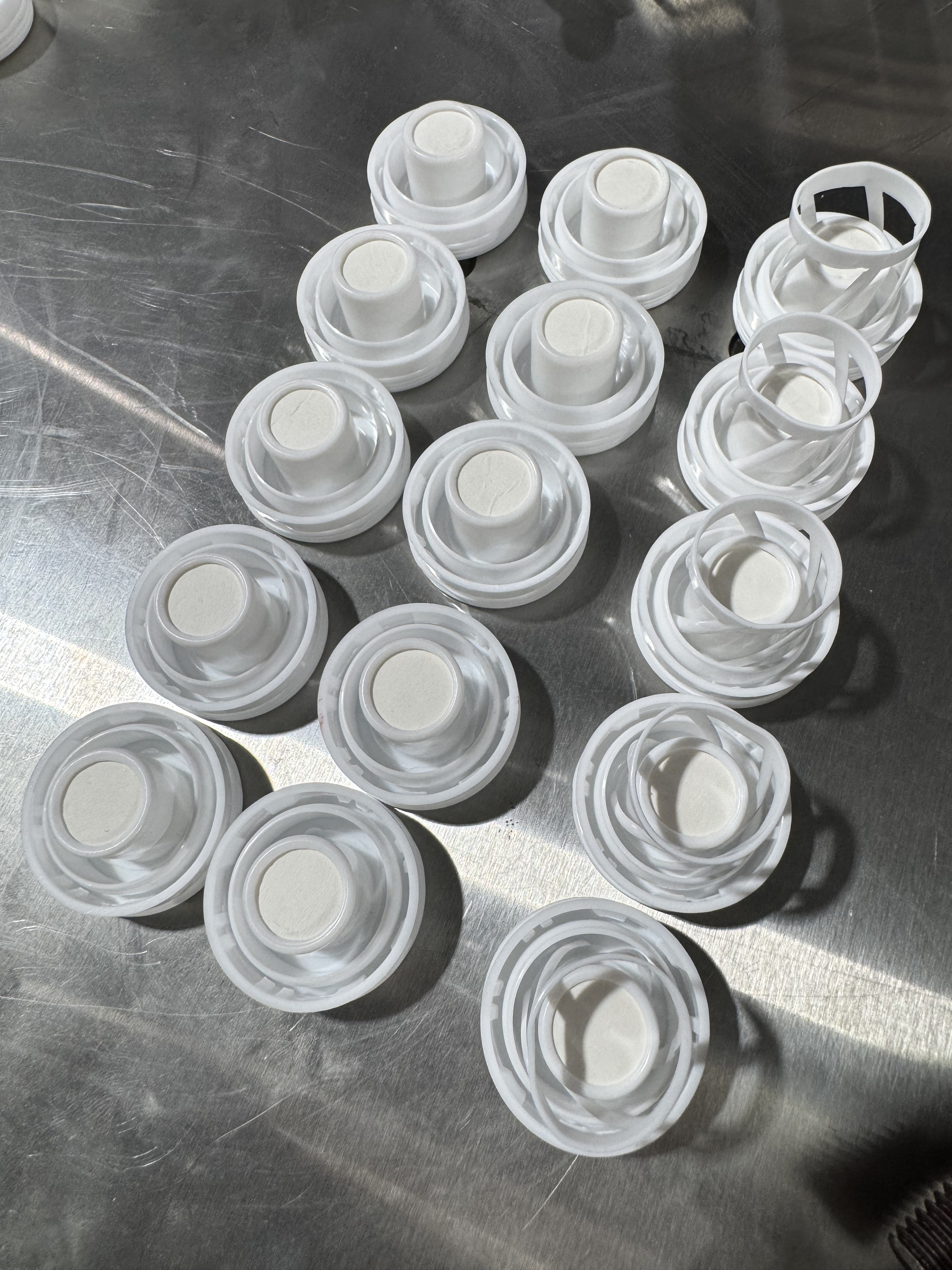 Vacuum suction taken 4 cardboard at one time and insert into caps.