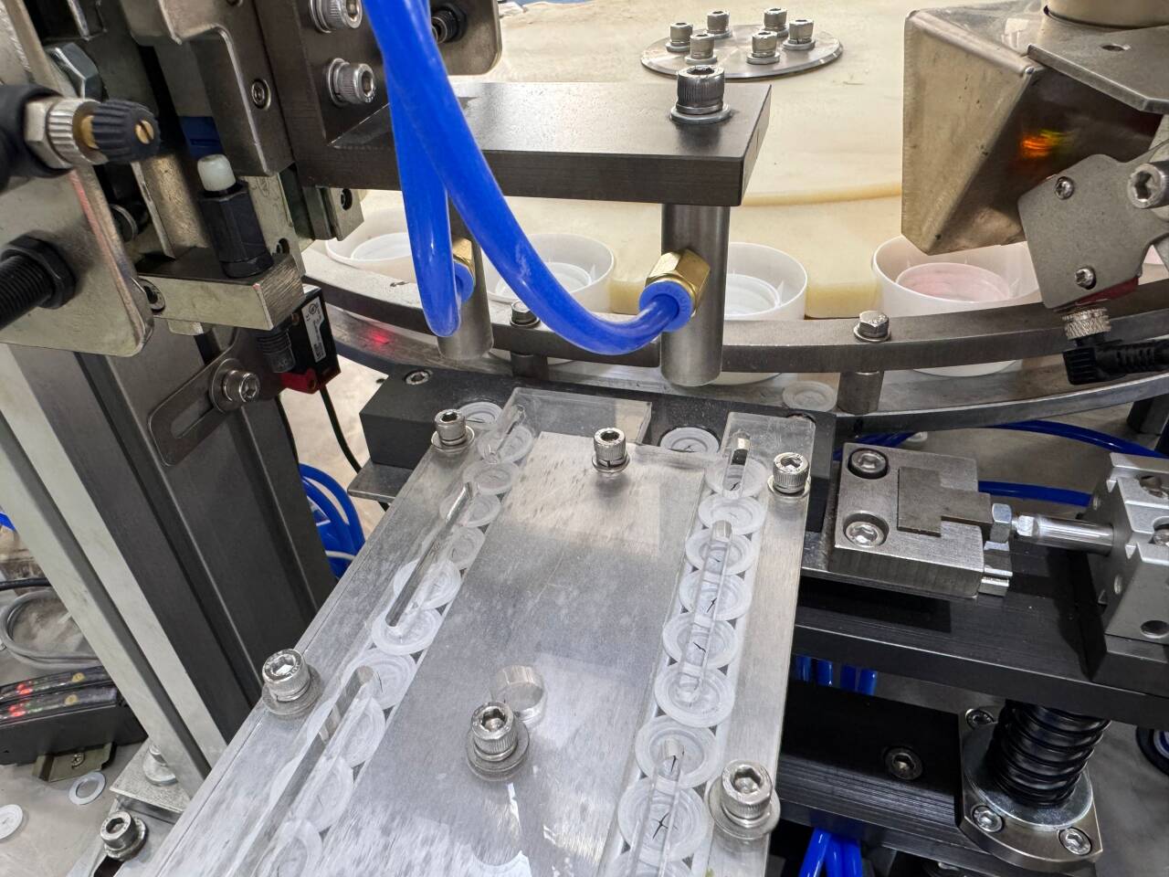 The machine can assembly 2 parts at speed of 9000 pcs per hour,much fast and clean..